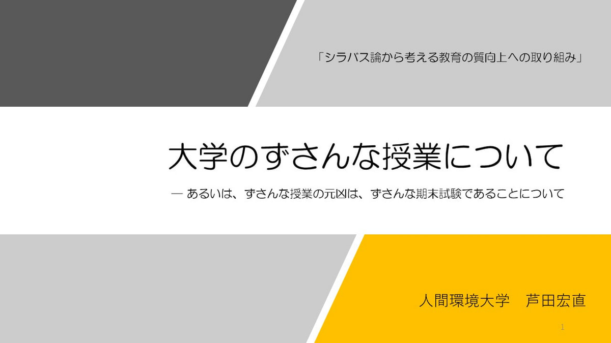 本日13日15:00より東京ビックサイトでの講演+対談(京都大学・飯吉透先生)のネタスライド(まだまだ誤字脱字含めて修正中)です。飯吉先生との対談は、このスライド講演についてのものになります。対談に引き続いて公開質問も受け付けます。WEB視聴も現地参加も無料です。私の講演のWEB視聴はすでに200名くらいの申込みがあるそうなので、私もお楽しみにしております。何と言っても『シラバス論 ― 大学の時代と時間、あるいは〈知識〉の死と再生について』(晶文社刊)を出した途端にコロナになってしまい残念なままの2年間でしたから。みなさま、本日ビックサイトで久しぶりにお会いしましょう。ご参考までに27枚のスライドはすべてアップしておきます。時間内には絶対全部終わらないと思いますので。