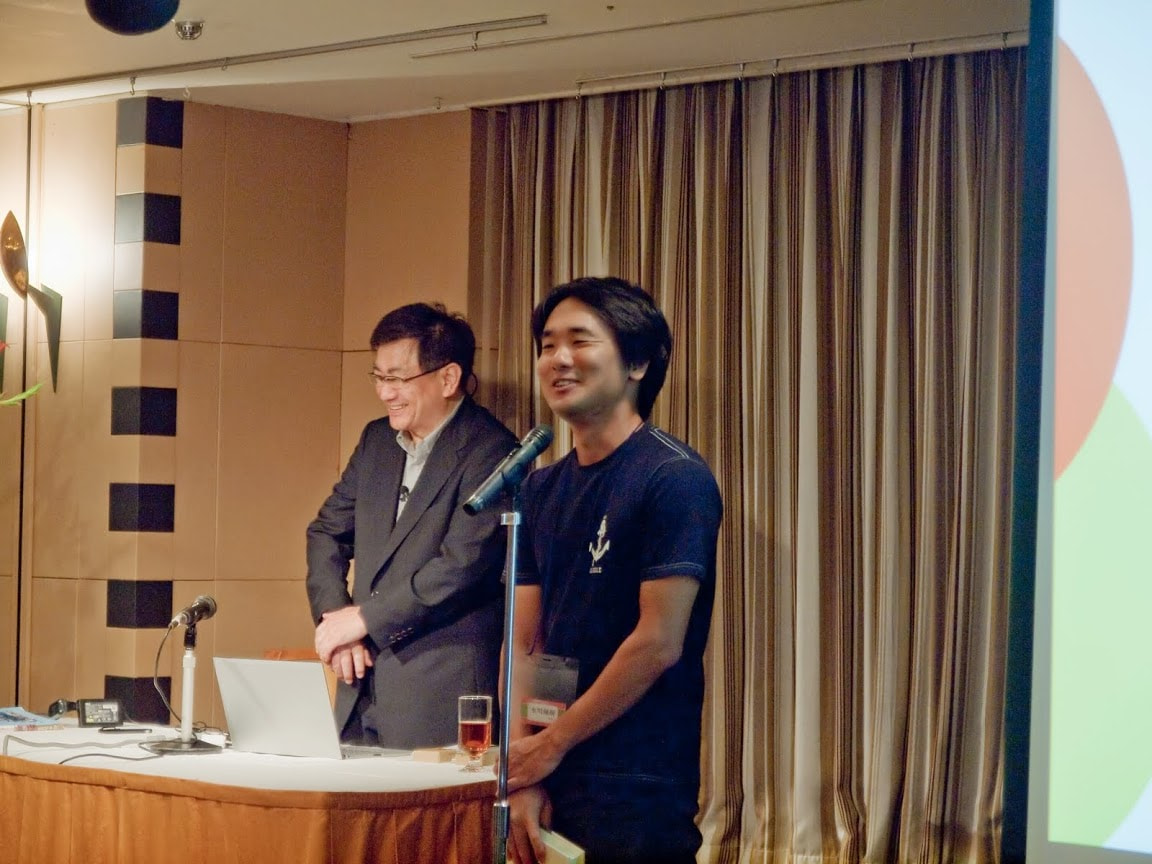 今私福岡に住んでいるんですけれども、今日このためだけに東京に来たのは、結構芦田先生って書くことと言うことが違っていて、ツイッター微分論の中では、ツイッターはフォロワー数じゃなくてフォロー数が大事なんだと、どれだけフォローするかっていうのがツイッターの本質だ、と言いながら、何かの食事会で、芦田先生とリアルで最初にお会いした時に、開口一番に「あなたが永川さん、あなた何人フォロワーいるの?」みたいなことを仰るという…(笑)(会場笑)、この先生ちょっと…(笑)、まぁその、そういうユーモアを聞くために今日はわざわざ福岡から出てまいりました。えっと、本当に今日はおめでとうございます(笑)(芦田「何だそれ(笑)」)。(2013年8月7日)