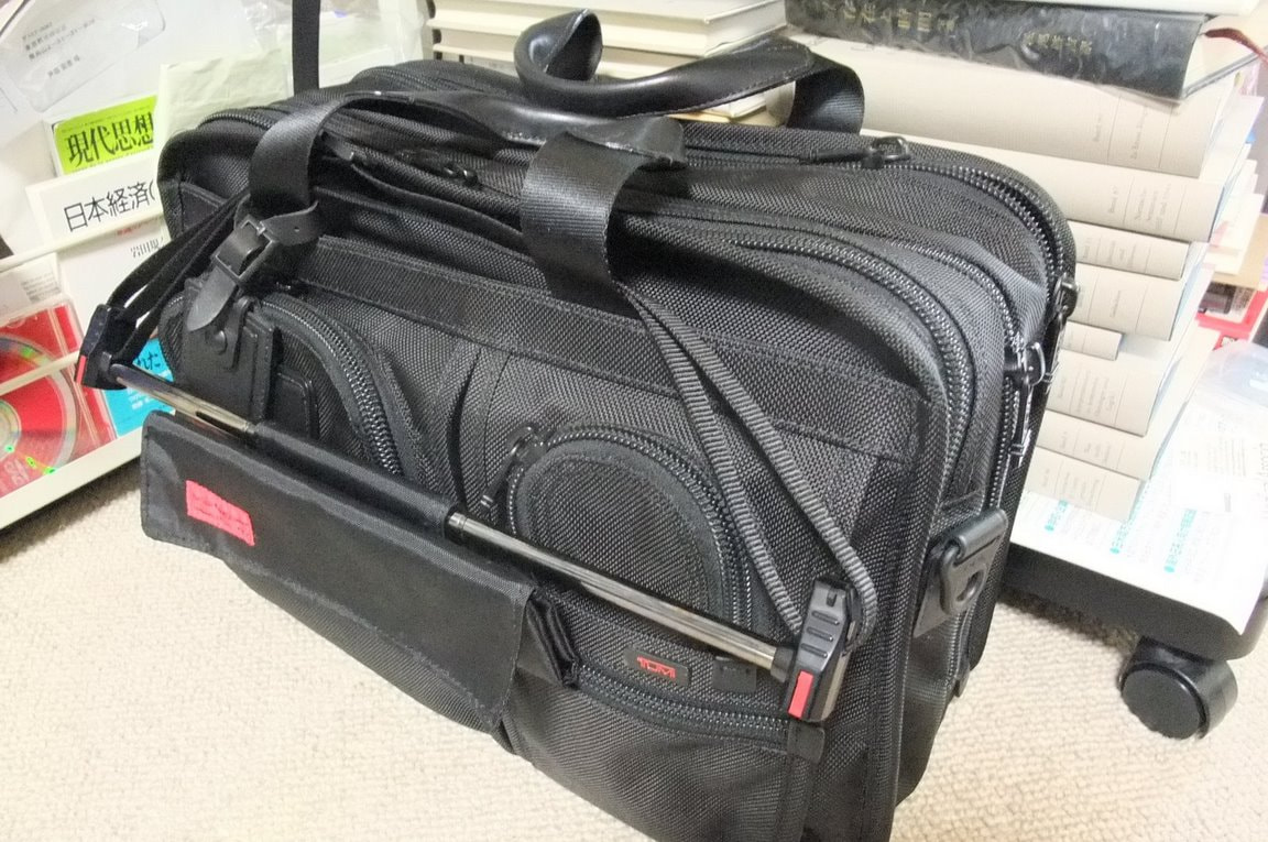 今回買った26104の伸縮するスチールアームに既に2ヶ月前に買った26141をドッキングさせれば(できるようになっている)、1週間くらいの出張も可能になる。何よりもTUMIの2段重ねキャリングバッグ体制というのも格好いいではないか(苦笑)。まだ見たことがないが(笑)。